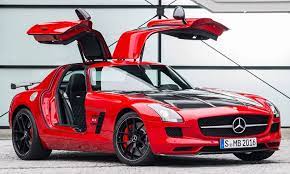 The Mercedes entry in the supercar market is the SLS AMG. The Europe-only SLK55 AMG Black Series of 2006 was the first and was followed by a CLK63 an SL65 and a C63 that. Described as the spiritual successor to the Mercedes-Benz 300SL Gullwing clearly the design inspiration also drew on the spectacular 300 SLR Uhlenhaut Coupé from 1955.